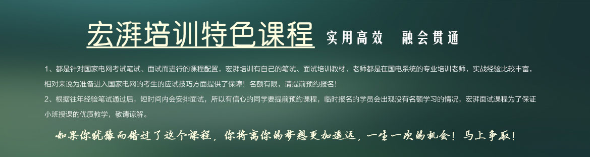 宏湃培訓大部分老師均來自行業內部人員,理論聯系實踐,擁有雄厚的師資力量,我們集聚國內外一流的名師、實戰派專家和行業精英。宏湃培訓針對不同的學生小班教學,因材施教,電話咨詢025-52923777或點擊咨詢專業老師給你量身定做屬于你自己的面試班次,讓你一舉成功入職國家電網!選擇大于努力!