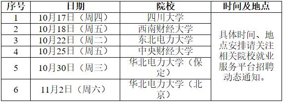 英大長安保險經(jīng)紀(jì)有限公司將于2019年10月赴以下院校開展2020年高校畢業(yè)生校園招聘宣傳,行程安排如下:
