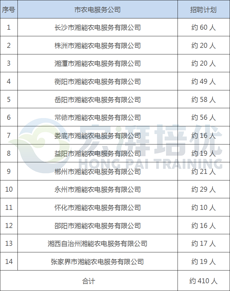 2020年農電服務公司招聘計劃匯總表