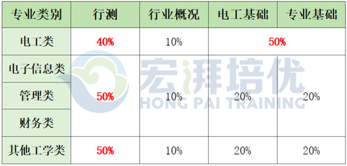 電工類專業(yè)筆試主要考查綜合能力和專業(yè)能力兩部分,各專業(yè)類別占比如上。