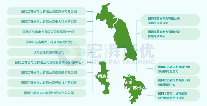 電力科學研究院、經濟技術研究院、電力工程咨詢有限公司、城市能源研究院(蘇州),管理培訓中心、信息通信公司、物資公司、檢修公司、送變電公司、技能培訓中心等。